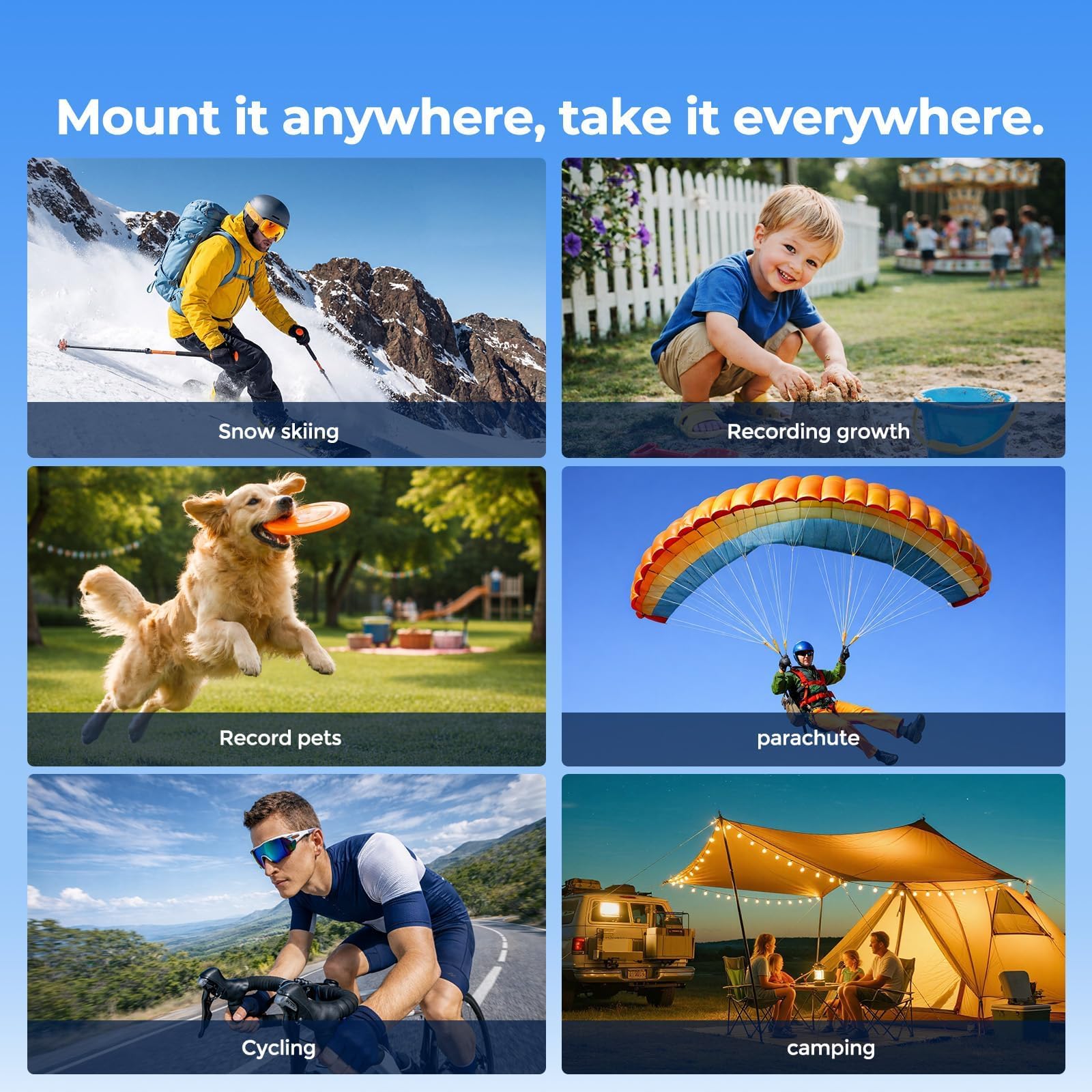 Portable action camera for cycling, travel, and outdoor adventures. Mount anywhere to capture stunning POV footage from your perspective.